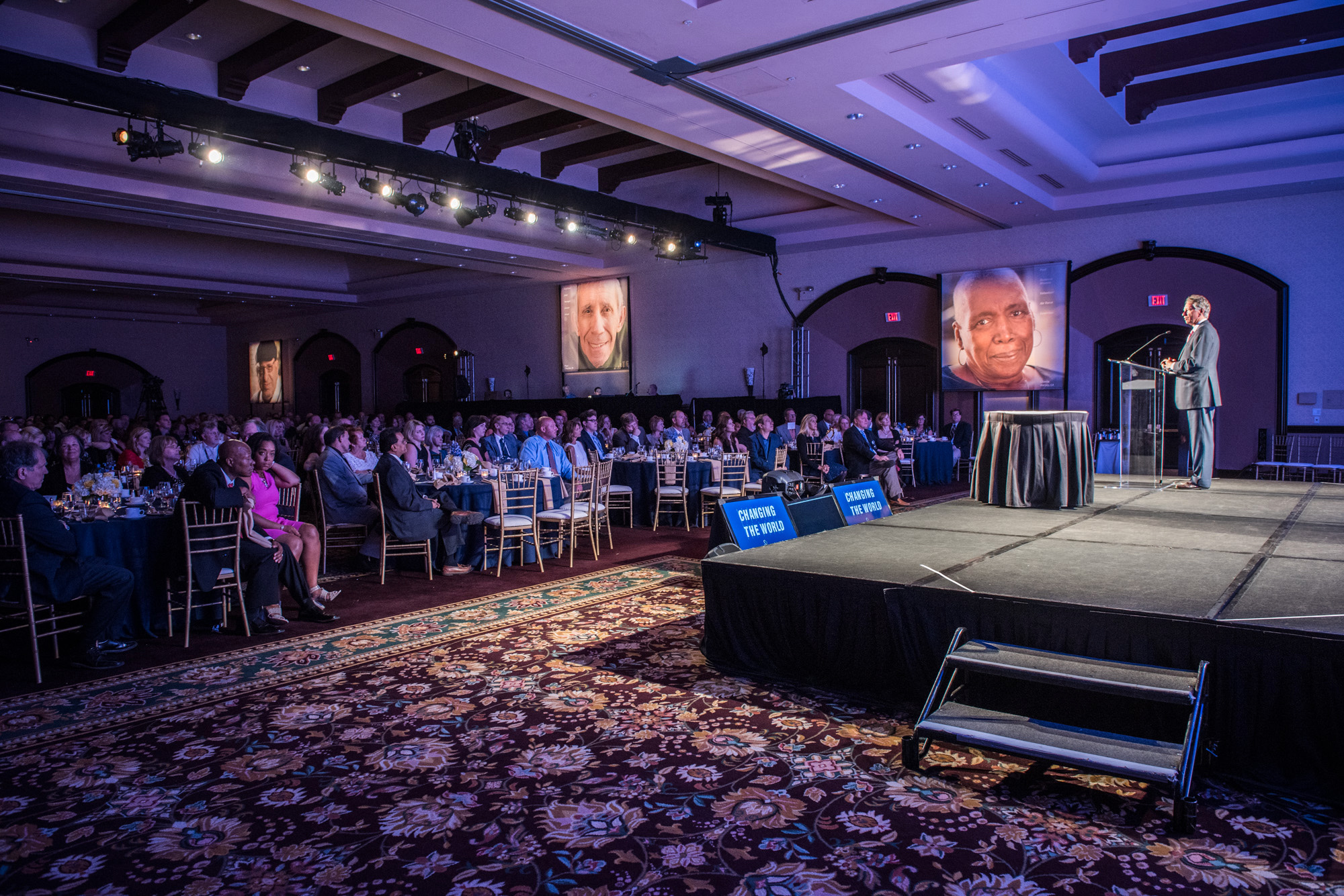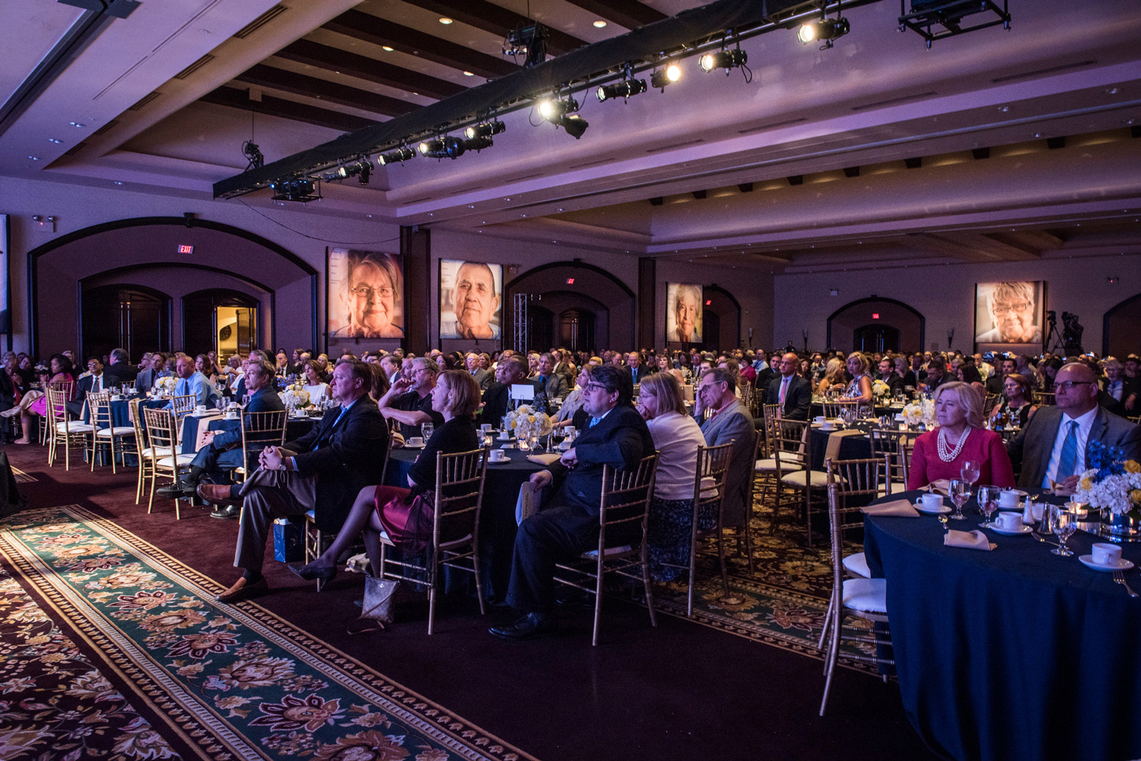 This scenic decor was created based on a concept imagined by our friends at Locomotion Creative. We created these 8′ X 8′ prints of our clients marketing personas. Load in day we installed them, bringing the overall design into the audience. We also used lighting to make them pop.